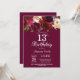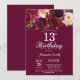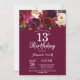 Invitation Bourgogne Floral 13e anniversaire de fête Invitati
