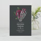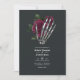 Whimsical vintage floral gothique squelette main faire-part de mariage dans les accents de bordeaux et de noir personnalisable à vos détails de l'événement. Idéal pour un thème ou un mariage de jardin. Le code QR au verso dirige vers votre site mariage où les gens peuvent en savoir plus et rsvp.