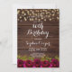 Invitation Bourgogne Floral String Lights 80e fête d'annivers