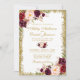 Elégante aquarelle Bourgogne Faire-part de mariage Floral et Parties scintillant or - Script or - Burgundy Back