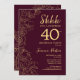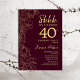 Bourgogne Gold Surprise 40e anniversaire Invitation. Le minimaliste marron design féminin moderne comporte des accents botaniques et des caractères typographiques. Carte invitation florale simple parfaite pour une célébration anniversaire surprise femme élégante.