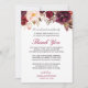 Créez le cadre Mariage parfait Carte de remerciements avec ce modèle floral Bourgogne élégant pour express votre appréciation à vos invités. (1) Pour plus de personnalisation, cliquez sur le lien "customiser plus loin" et utilisez notre outil de conception pour modifier ce modèle. (2) Si vous préférez les papiers plus épais / Finition mat, vous pouvez envisager de choisir le type de papier mat. (3) Si vous avez besoin d'aide ou d'articles correspondants, veuillez me contacter.