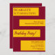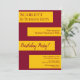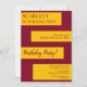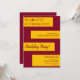 Cette élégante invitation d'anniversaire bordeaux et or est parfaite pour un anniversaire moderne. le design simple présente une élégante calligraphie bordeaux sur des rayures d'or sur un arrière - plan bordeaux.