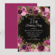 Elégante et romantique rose, bordeaux, et violet aquarelle vintage florale et feuillage sur coutume noire 21ème anniversaire invitation à la fête avec parties scintillant or. Personnalisé avec le nom de l'invité d'honneur.