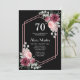 Cette élégante invitation à l'anniversaire de la flore présente une fleur rose bordeaux avec des feuilles et des plantes sur fond noir.