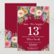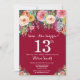Invitation Bourgogne Rouge Floral Surprise 13e anniversaire