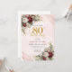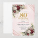 Invitation Bourgogne Rouge Foncé Floral Or 80ème Anniversaire