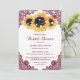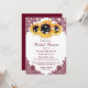 Invitations de douches nuptiales de tournesol bordeaux personnalisées avec tournesol, lampes à cordes et dentelle fleurie. Des articles assortis disponibles pour compléter ces élégantes invitations à la douche nuptiale rustique et chic bordeaux.
