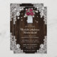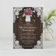 Elégante faire-part de mariage à fleurs bordeaux rustique avec bouquet de roses et fleurs d'haleine de bébé à l'intérieur d'un bocal en maçon contre un arrière - plan en bois de grange orné de dentelle fleurie blanche et de lampes à cordes. Un design de carte parfait pour inviter vos invités à votre mariage rustique bordeaux. Personnalisez facilement cette invitation de mariage avec vos détails mariages en ligne. Conception entièrement personnalisable. Éléments correspondants disponibles.