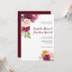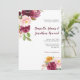 Fleurs d'aquarelle rustiques en bordeaux, jaune safran, et invitations de mariage florales roses. Les zones de texte sont faciles à personnaliser avec vos propres informations. Le texte est un mélange de polices de calligraphie modernes et ornées. Le dos de la carte est bordeaux foncé. Parfait pour un mariage d'automne ou d'hiver.