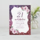 Burgundy violet faux brillant parties scintillant arrière - plan et rose floral avec "21 et fabuleux" script au centre, élégant et élégant, grandes invitations de fête de 21e anniversaire. Papier fini semi-brillant sélectionné.