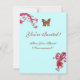 Papillons d'or blanc, fleurs et fleurs de fuchsia rouge vif au printemps.Peinture originale à l'aquarelle avec feuille d'or et d'argent de Bulgan Lumini (c)..Facile à customiser avec vos initiales et votre propre texte comme faire-part nuptiale, carte de place, carte de remerciements, doux 16 anniversaires, pique-nique, graduation, douches fiançailles, anniversaire ou tout événement je vous souhaite ! com