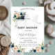 Mignonne cigogne, boîte aux lettres avec des fleurs d'aquarelle invitation baby shower. Ces invitations pour les douches pour bébés cygnes sont facilement customisées pour votre événement en ajoutant simplement vos détails.