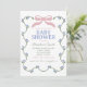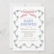 Cette carte de baby shower présente une vigne à fleurs rose pastel et verte avec arc, évoquant un charme classique. Le message "Baby Showerl" en lettres traditionnelles assure à la faire-part un attrait visuel tout en maintenant un air d'élégance décontractée. La carte reflète une atmosphère classique, préppie mais contemporaine, adaptée pour célébrer la future maman avec un design intemporel.