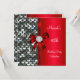 Invitation Jewel Bow en Diamant Rouge Rich Sequins Gris Argent 40 ans , Fête d'anniversaire. Personnalisez avec vos propres détails. RSVP correspondant disponible.