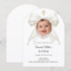 Invitation Bow Ivory Pearls Photo Girl Elegant Baptism Arch