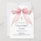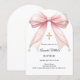 Invitation Bow Pink Pearls Girl Elegant Baptism Arch