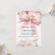 Un élégant arrière - plan blanc, décoré d'un grand arc rose et de fleurs roses. Personnalisez et ajoutez un nom et des détails du parti. Dos : arrière - plan rose doux.