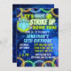 Invitation Bowling Striup Amusant Neon Glow Blue Boys Anniver