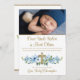 Bébé Godparent invitation avec fleurs d'aquarelle bleue et croix d'or. Téléchargez simplement votre photo et personnalisez cette carte d'invitation Godparent bleu et or.