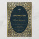 Invitation Boy Confirmation Gold Feuilles Croix Bleu élégant