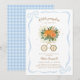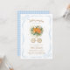 Celebrate your baby boy with this blue little pumpkin baby shower invitation. Featuring a sweet pumpkin stroller with soft florals on pale blue, it’s perfect for a cozy fall gathering. Easily personalize with your event details to create a charming invite guests will love and set the tone for a joyful day honoring your little one.