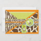 Wild and fun monkey hanging on jungle vine and a wild pacifier with zebra, giraffe, leopard, and cheetah patchwork prints with 3D-look lace trim ribbons baby shower invitation. Colors are orange, greens, and browns.