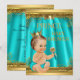 Baby shower Prince Boy. Golden Crown Gold Aqua Turquoise bleu Turquoise vert, mignon bébé baby shower Brunette. Arrière - plan turquoise et cadre doré. Invitation de fête "c'est un garçon". Invitations