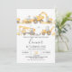 Boys Construction Véhicules Anniversaire Invitation Belle invitation à l'anniversaire de construction de petit garçon à thème avec divers camions et véhicules de construction dans deux rangées au sommet de la conception.