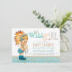 Baby shower tribal des garçons avec adorable bébé garçon portant des vêtements indiens et des mocassins amérindiens sur un arrière - plan design aztèque bleu turquoise. Cette invitation au baby shower tribal boho est facilement customisée pour votre événement en ajoutant simplement vos détails dans le style de police, la couleur et le libellé de votre choix. Il s'agit d'un dessin imprimé sans véritable parties scintillant.