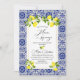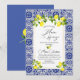 Invitation branche de citron et mosaïque bleue aquarelle chau