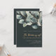 Cette carte de mariage sombre et élégante présente un superbe design de feuilles d'eucalyptus contre un arrière - plan au charbon de bois profond, avec des accents d'or qui apportent une touche luxueuse à votre faire-part mariage. Le contraste audacieux entre le feuillage vert tendre et la riche toile de fond foncée donne à cette carte une touche moderne et sophistiquée, parfaite pour les mariages contemporains avec une esthétique chic. Les fontes serif élégantes et classiques mettent en valeur les détails mariages, ce qui rend cette carte à la fois frappante visuellement et sans effort. Idéal pour les couples qui souhaitent donner un ton élégant et intemporel à leur mariage.