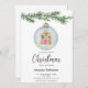 Branche d'hiver avec un jouet. Baby shower d'aquarelle avec branche de pin de Noël avec boules de jouets du Nouvel An dans une maison en pain d'épices.
