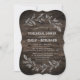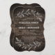Cette carte d'invitation en bois de répétition en branches courbées est parfaite pour un événement moderne. Le design rustique chic présente la silhouette de deux branches fleuries disposées pour composer une couronne feutrée rustique sur un arrière - plan en bois.