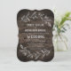 Cette carte de faire-part de mariage en bois aux branches courbées est parfaite pour un mariage moderne. Le design rustique chic présente la silhouette de deux branches fleuries disposées pour composer une couronne feutrée rustique sur un arrière - plan en bois. Pour plus d'options de libellé faire-part de mariage, veuillez consulter la collection de Mariages de branches incurvées complète : https://www.zazzle.com/collections/119406265505219166