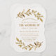 Cette branche incurvée dorée le mariage de la carte d'invitation est parfait pour un mariage moderne. Le design classique comprend deux branches métalliques en faux or, disposées pour composer une élégante couronne feuillue. Remarque : Ce design ne comporte pas de véritable feuille d'or. C'est un graphisme de haute qualité fait pour ressembler à du papier doré. Pour plus d'options de libellé faire-part de mariage, veuillez consulter la collection de Mariages de branches incurvées complète : https://www.zazzle.com/collections/119330871605106792