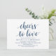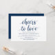 Calligraphie moderne (Cheers to love) Carte d'invitation de douche nuptiale. Invitation les invités avec cette carte d'invitation parfaite. Ajoutez les détails de votre douche nuptiale dans le libellé bleu marine correspondant.