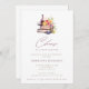Bravo à un nouveau chapitre Vin & Livres Invitation à la douche nuptiale avec une composition aquarelle d'une bouteille de vin, verre, livres et fleurs. "Cheers" est en masala moderne lettrage manuel.