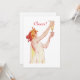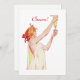 Santé! Une carte d'invitation avec une femme à tête rouge de la période art déco, levant un verre et torréfier au succès.