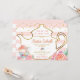The invitation features tea pot outline with teacups and blush flowers. It's perfect for a bridal shower tea party.
