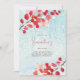 Cette invitation à la douche nuptiale d'hiver, élégante mais simple, présente des baies rouges d'hiver peintes à la main sur un arrière - plan de flocons de neige bleu pâle. Le nom de la mariée mis dans une tendance à la main lettrée typographie calligraphie dans un rouge gratuit. Un choix moderne pour votre douche nuptiale de Noël ou vos fêtes de vacances. Votre design peut même être téléchargé facilement en tant qu'invitation numérique. Pour plus d'invitations à un mariage de Noël visitez www.zazzle.com/agape