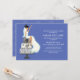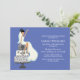 Des invitations amusantes et chic illustrent bien une mariée heureuse assise sur un gâteau mariage. Conception parfaite pour les douches nuptiales, les soirées bachelorette, etc.