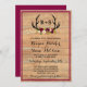 Cette invitation de mariage rustique présente un fond de planche de bois avec des bois de cerf ornés de fleurs. Parfait pour tout mariage champêtre ! Veuillez me contacter si vous souhaitez de l'aide pour la mise en forme de vos informations textuelles sur cette invitation de mariage.