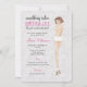 Offrez à la mariée une douche de lingerie sexy avec ces invitations chics qui mettent la mariée dans rien d'autre que ses talons et culottes ! Arrière - plan en lingerie en dentelle avec soutien-gorge et culotte sur le dos avec les tailles de la mariée. Plusieurs options sont disponibles pour customiser le style de cheveux des mariées, la couleur des cheveux et le ton de la peau.