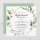 Cette invitation de brunch aux sirènes d'or géométrique et élégante est parfaite pour un simple wedding shower. Le design est orné de feuilles d'eucalyptus verts peints à la main et ornés d'un cadre géométrique doré.