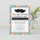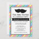 Mustache Anniversaire Invitations avec des rayures colorées vives en blanc, jaune, rouge, bleu, vert, rose et orange pour les hipsters qui staches coeur!