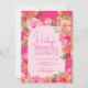 Invitation vos invités à célébrer avec cette invitation vibrante et élégante à la douche nuptiale boho, avec un arrière - plan rose audacieux orné de fleurs d'aquarelle peintes à la main dans les tons rose, pêche et vert. La typographie moderne et ludique et l'écriture élégante font de cet invitation un lieu idéal pour une douche de mariée branchée et joyeuse. Le design est personnalisable, vous permettant de personnaliser facilement les détails pour s'adapter à votre événement. Faites une déclaration audacieuse avec cette invitation captivante qui capture l'esprit d'une célébration joyeuse.