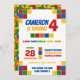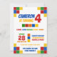 Briques colorées Blocs de construction à thème fête d'anniversaire! Vous pouvez modifier les couleurs et les styles des polices. Il est disponible dans un format texte modifiable qui peut être personnalisé par vous, ce qui le rend adapté à tout événement, comme les anniversaires, les fêtes générales, les douches, etc. Un côté arrière correspondant au modèle est inclus afin que vous puissiez ajouter des informations supplémentaires sur votre événement ou même une photo !