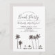 Une invitation de fête de plage après-mariage présentant une image aquarelle d'un seul palmier côtier. En dessous se trouvent les détails de votre journée de fête unique.