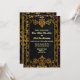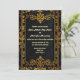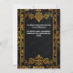 Un bel arrière - plan vintage en damas doré brocade forme un cadre autour d'un fond floral noir foncé infusé sur lequel des modèles de texte blanc pour votre libellé personnalisé apparaissent. Ce design élégant, orné et vintage est idéal pour un anniversaire de mariage indien ou de mariage noir et or. Le verso de l'invitation a des modèles supplémentaires pour plus de détails aux clients et à la famille, qui peuvent être enlevés si non requis. Les tonalités vives et audacieuses confèrent à ce design une atmosphère royale luxueuse, élégante et haut de gamme. Cette invitation est idéale pour célébrer n'importe quelle cérémonie hindi ou hindou ou toute fête ou mariage d'origine asiatique.